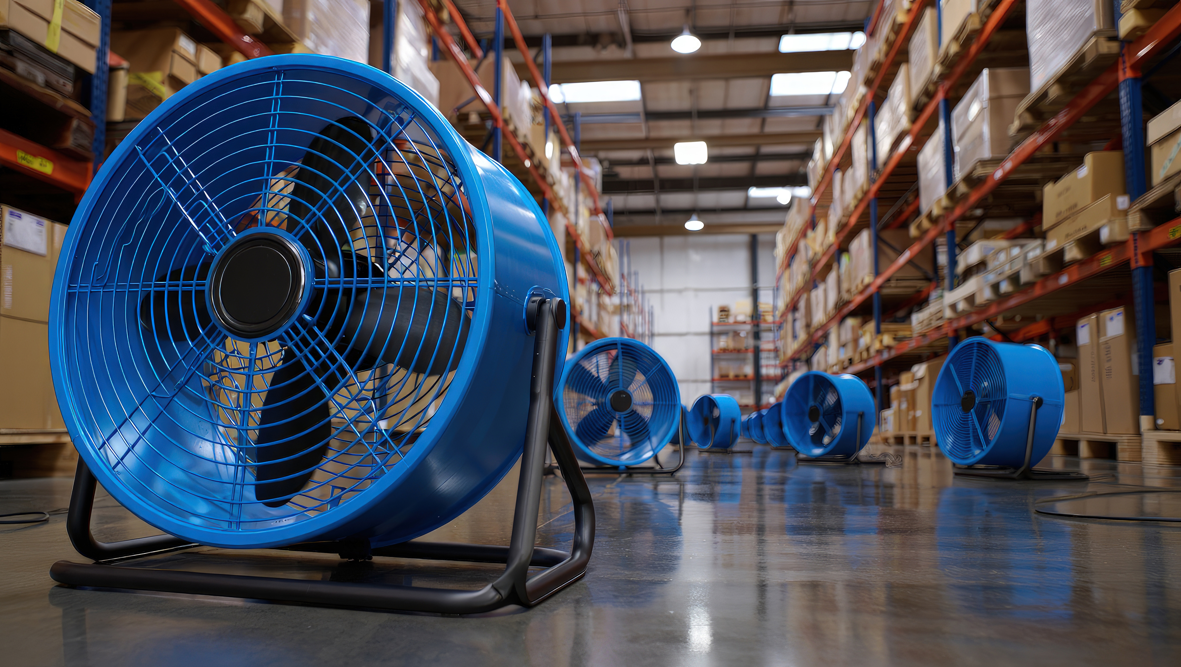 Industrial air movers and dehumidifiers to remove moisture from air and materials.